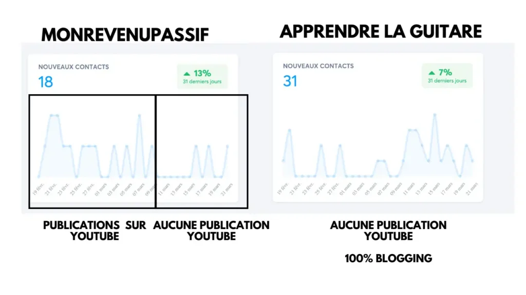 À l’inverse, mon blog de musique continue de générer du trafic, des inscrits et des ventes de manière autonome, simplement grâce aux articles déjà publiés.