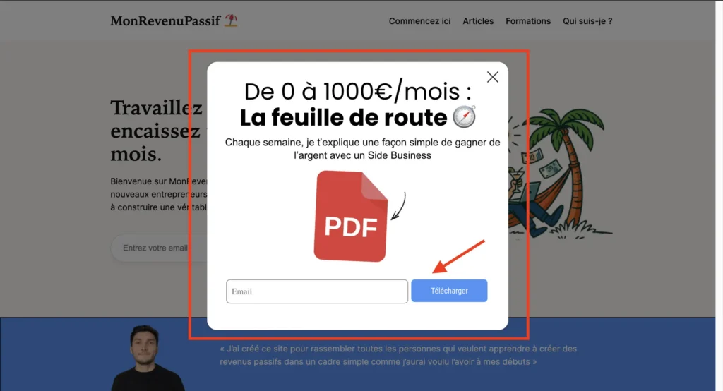 La pop-up est un outil utile pour récupérer des emails avant que le visiteur quitte votre site. Ce n’est jamais le canal le plus explosif en conversion, mais il a quand même son petit succès.
